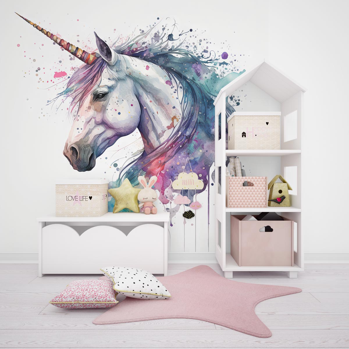 Tapeta Tęczowy Jednorożec to kolorowa i bajkowa dekoracja ścienna, które idealnie sprawdzi się w pokoju Twojej pociechy.