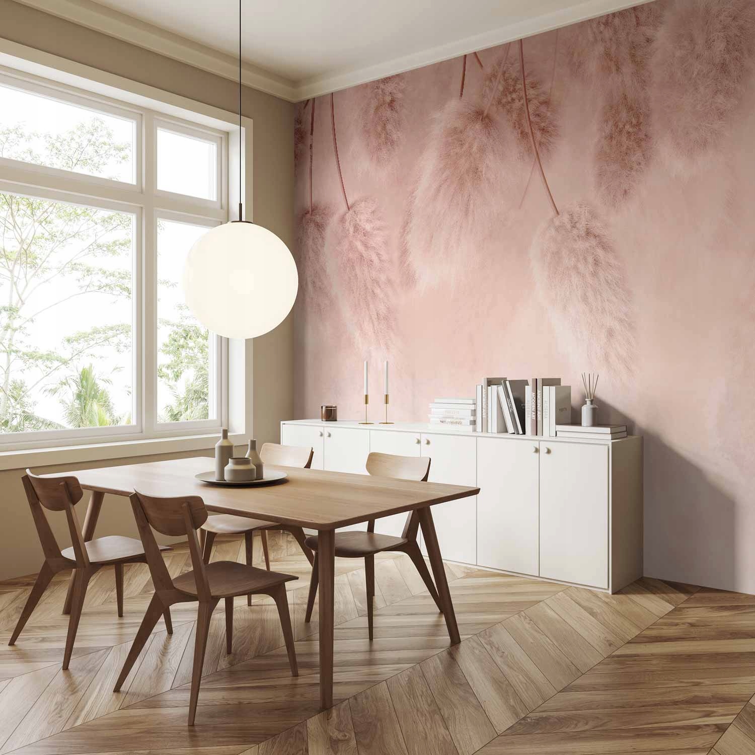 Tapeta Trawa pampasowa wisząca róż w doskonały sposób urozmaici każde wnętrze, stanowiąc praktyczny i niezwykle efektowny dodatek aranżacyjny. Proponowana tapeta drukowana jest na wysokiej jakości lateksowym materiale, który umożliwia doskonałe odwzorowanie kolorów, zachowując oryginalne wzory i głęboką paletę barw.
